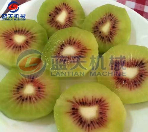 將中和過的獼猴桃沿果實縱向切縫,切縫寬度2~3毫米(每個果約需切25~30刀),深度約為果實直徑的1/3,達果實髓心部。為防止氧化變色,應將切好的果實放入1%~2%食鹽溶液中保存。