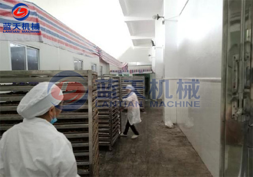 紅糖烘干工藝:將紅糖磚切成方塊狀,置入托盤中,在物料架中分層放好,注意層與層之間的距離,將物料車推入烘干房,開始啟動溫濕控制系統(tǒng),在紅糖烘干機(jī)的使用過程中,第一個小時可以只升溫不排濕,因為在工作的第一階段,烘干房里面的濕度很低。第二階段設(shè)定為烘干加排濕的工作程序模式。紅糖烘干機(jī)帶有余熱回收功能。在排濕過程中的熱量會重新參與到烘干房的熱循環(huán)。排濕過程當(dāng)中不會造成熱量浪費,從而降低了運(yùn)行成本。