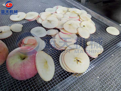 二、攤放在物料托盤上,蘋果片都裝好后,推入蘋果片烘干機內進行烘干